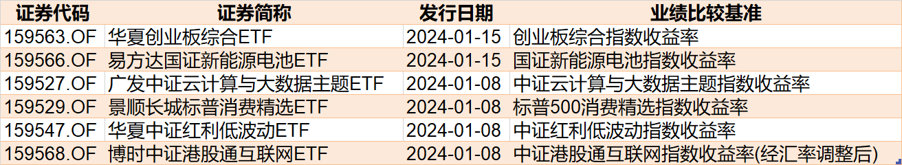 发行方面,目前有2只ETF披露下周发行,跟踪标的为创业板综合指数、新能源电池。