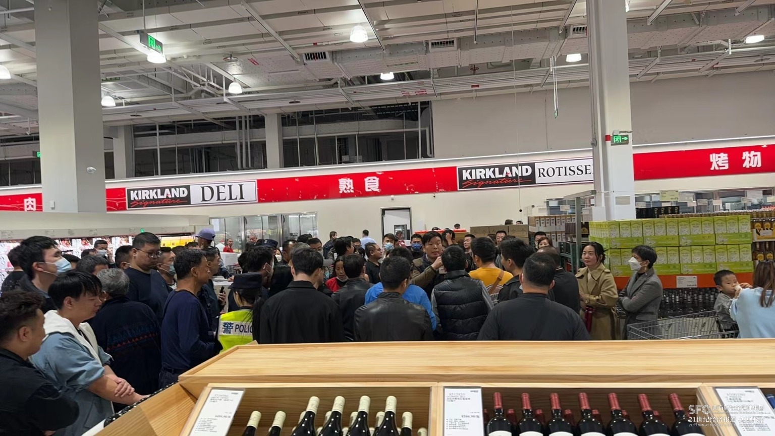 (消费者正围堵在开市客酒类柜台讨说法摄/石恩泽)