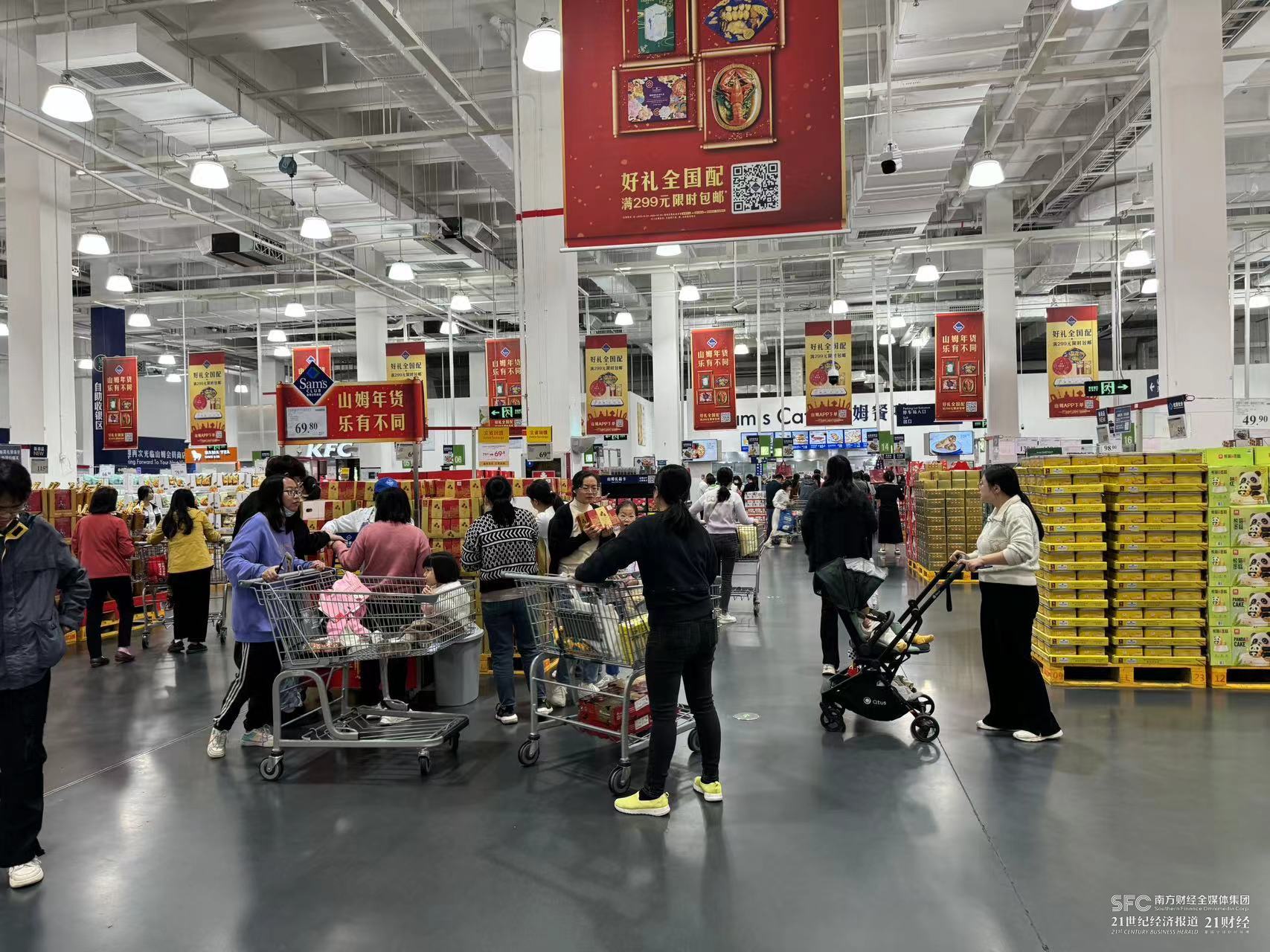 (同日,距离开市客4公里之外的龙华山姆店内人流量未见明显变少摄/石恩泽)